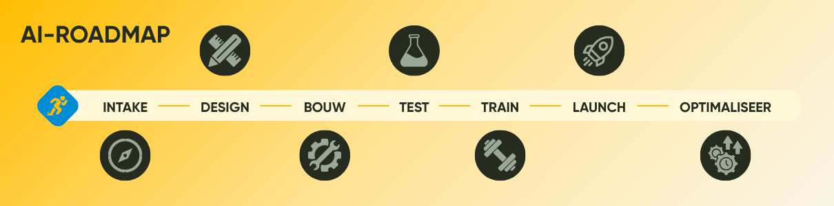 We nemen alles uit handen, van architectuur tot adoptie. Je krijgt geen black box. We zorgen voor security, privacy en meetbare resultaten. Dit kun je zoal van ons verwachten: