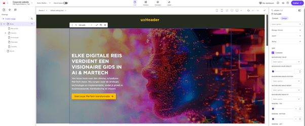De echte kracht van XM Cloud zit in de headless architectuur. Content wordt losgekoppeld van presentatie, waardoor je verhalen en ervaringen kunt verspreiden over alle kanalen — websites, apps, schermen, campagnes — zonder dat je voor elk kanaal een apart platform nodig hebt. Voor marketeers betekent dit dat je niet meer denkt in pagina’s, maar in ervaringen. Je bouwt content één keer op en publiceert deze overal, aangepast aan context en doelgroep.